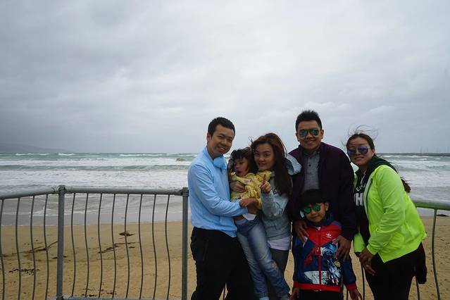 我们的apartment就坐落在St Kilda Beach, 于是放好了行李后两个爹和两个娃就兴冲冲地跑去海里面玩耍了,也不管这海水的水温貌似也就那么十几度…… 海滩很热闹,周围有很多餐厅,大肥对这里炒鸡满意~