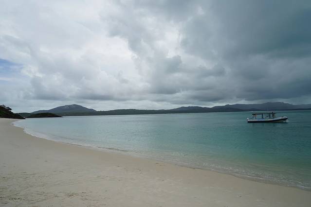 今天状态不好之余运气也不好…… 😨 游艇出海遇上大风大浪 🌊,半小时的航程中游艇抛得很厉害,原本就不大舒服的更是吐得七荤八素🤢,船停后大家都相继下水,但是有一个潜导见我状态不佳就特地留下带我和大肥。根据之前的潜水经验,在艇上即使抛得晕吐,下了水就好了,所以即使很不舒服我还是强打起精神背起空气瓶下水。下了水的确好一些,玩了大概两分钟潜下去几米玩了一会儿,但胃酸顿时又上涌,在海底下又吐了…… 安全着想,还是到礁岛岸上休息去~ 丢脸丢到大洋洲 😑