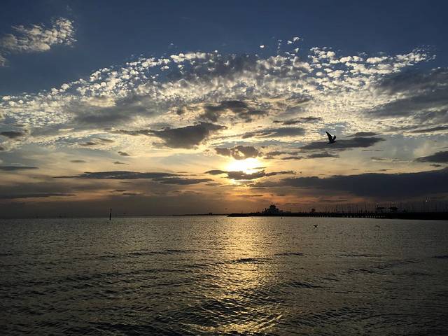 今晚的天气是在墨尔本这几晚里面最好的,夕阳,云彩和海鸟构成了一幅唯美的画面,遗憾的是,我忘了把相机带下来了…… 我想着还有几个晚上可以慢慢拍所以偷懒不回去拿相机,就手机拍着将就将就,怎知就这么错过了……然后……就没有然后了…… 😭