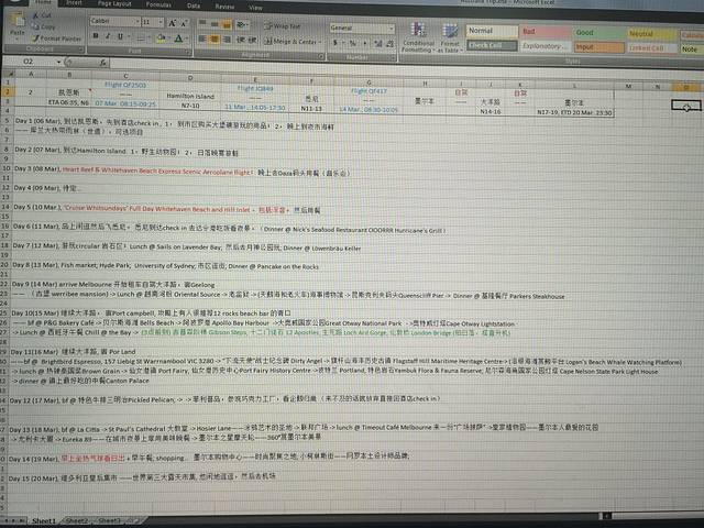 全部都是在去哪儿网站搞掂的 www.qunar.com, 不得不说去哪儿有时联程特价机票真的比官网订还要便宜啊~ 由于澳洲领土辽阔,走回头路的话太浪费时间,所以还是订了联程机票而不是原地往返,当然原地往返很多时候都相对会便宜些。我们3月中出发其实已经过了澳洲旅游最旺季的时间,所以机票也不是很贵滴。