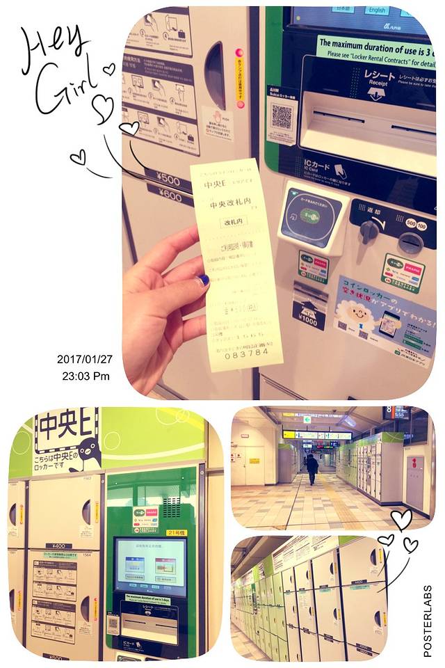 行李寄存,第一次使用不会操作,损失600日元,庆幸的是,寄存箱很大,足以放下两个行李箱,和我们计划的金额是一样的,哈哈
