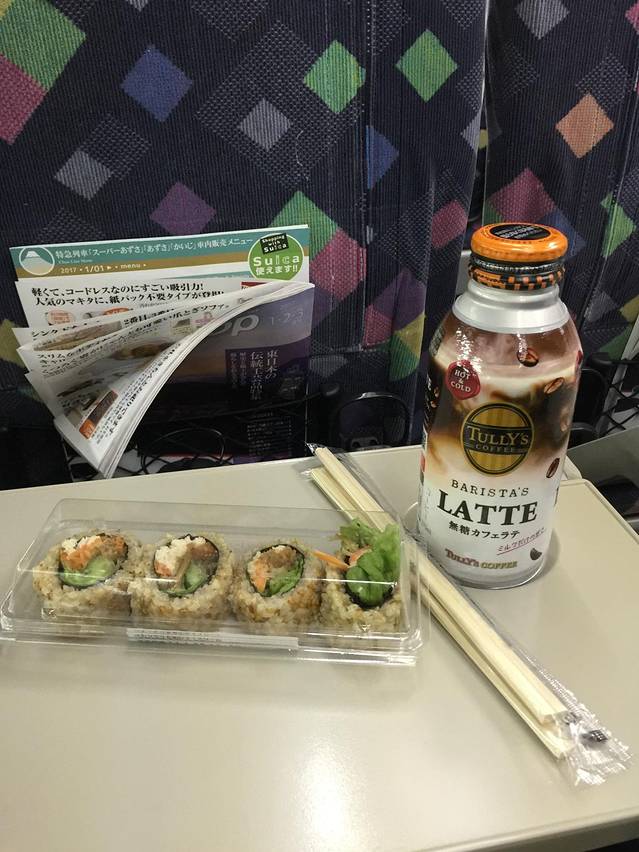 通往富士山的列车上,早餐没吃饱,路上买了便当寿司,味道不错哦!喜欢咖啡的我,好像几乎每天都在买咖啡喝,可惜选错了,是无糖的,日本人不喜欢吃甜食,很多饮品都是无糖,这点让我很是郁闷啊、