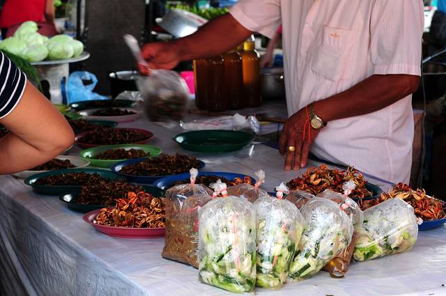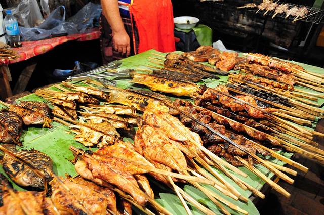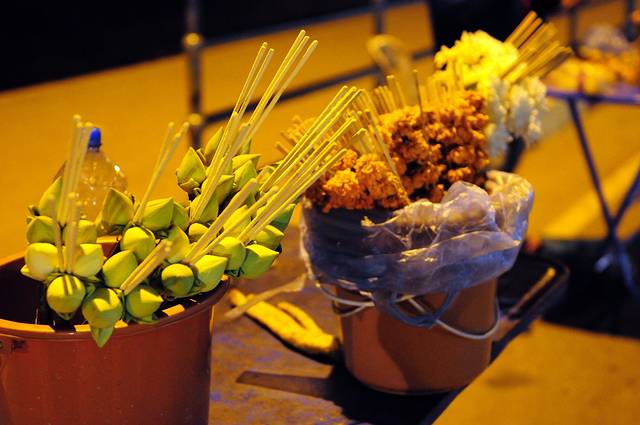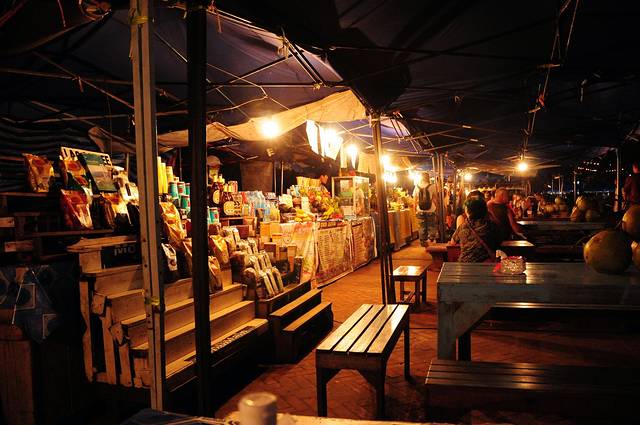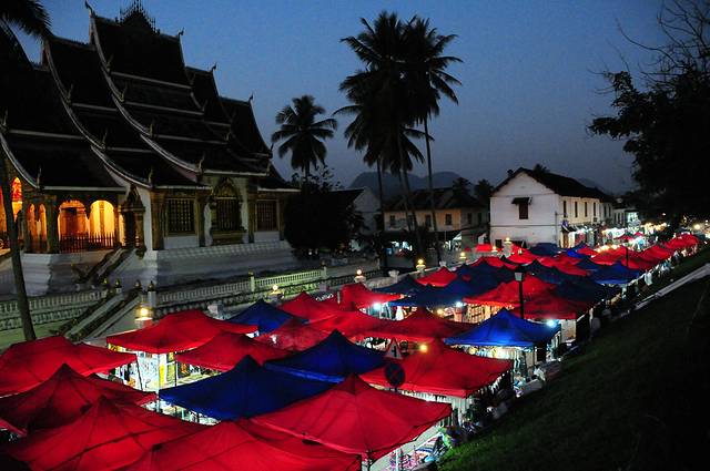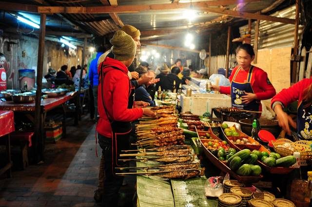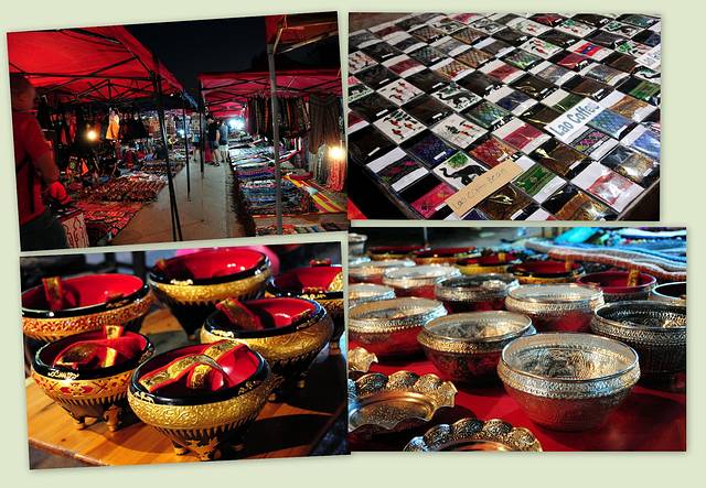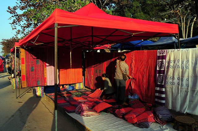 琅勃拉邦的夜市很是热闹,这里卖的几乎都是老挝最出名的纺织品和手工艺品、珠宝、雕刻、油画、T恤衫、咖啡姜茶等外国人来老挝必买的东西,所以请不要被摆摊的小女孩所报的价格吓怕,你需要厚着脸皮讨价还价,否则你支付的可能是多10倍的价钱。