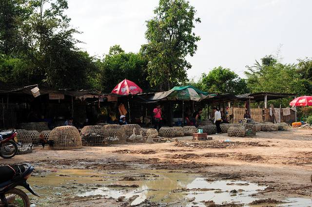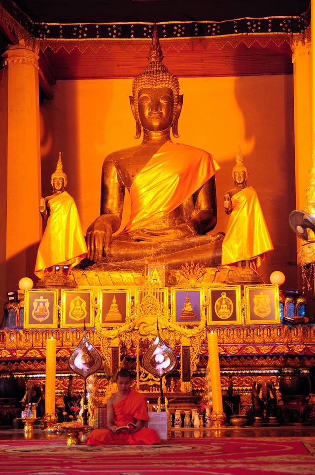 阵雨让人感觉寒意不断,没有光线,漫不经心的走着。拐进不远处的迈佛寺(WAT MAI MONASTERY)寺庙里转转,有小和尚在烧柴取暖,寺庙挺大但后院在维修,光线也不好。出来看见路边的换钱岗亭看见的汇率比口岸低了不少。