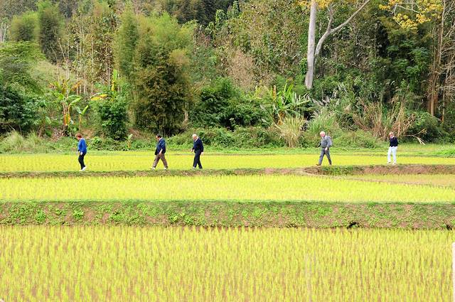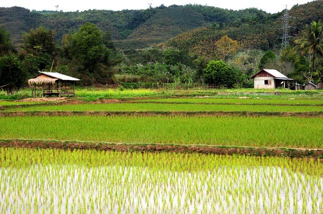 路过一大片水稻田,郁郁葱葱的水稻秧苗也吸引了一车外国游客纷纷下车驻足,他们可能也和我一样好奇于老挝米饭的醇香与粘糯。
