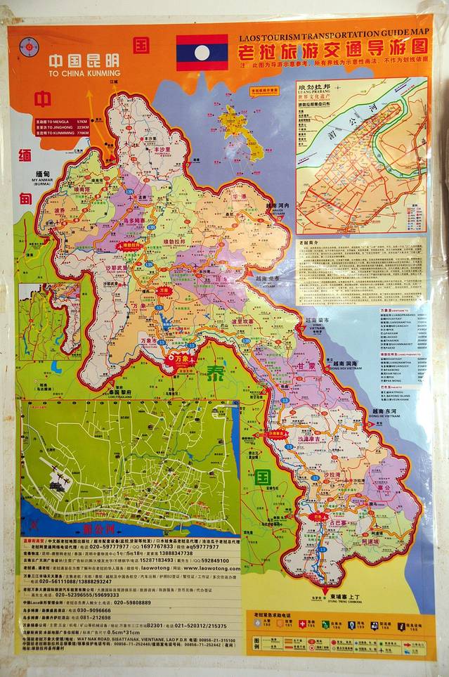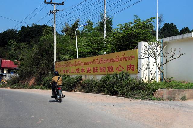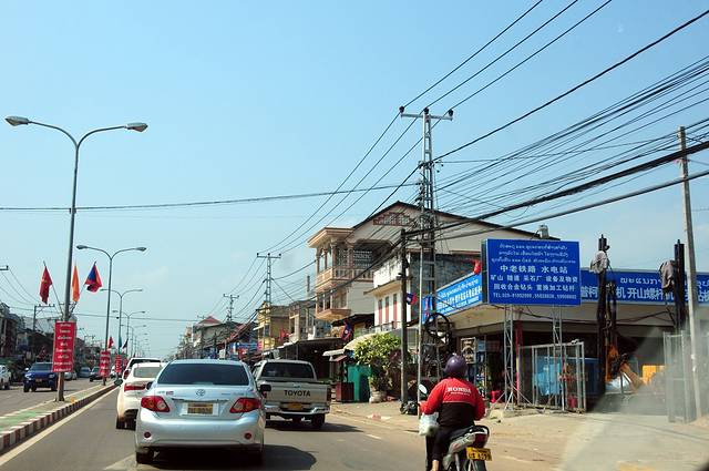 买了卡继续赶路,在路边一个中国餐馆午餐,老板是泸州人,带着家人来老挝发展,说是朋友介绍来的。据他介绍,店内请的老挝小工每月800万KIP折算640元人民币,世界排名第三的著名的老挝啤酒beer lao 8元人民币一瓶。老挝的消费比国内贵很多,因为土地贫瘠又无技术,加之老挝人民天生慢节奏,东西主要靠进口,他有朋友来这里种菜据说收入不错,正在修建的从昆明到万象的铁路4年后开通了会带来许多商机。老挝米饭超级好吃,粘粘的非常香。聊天中看见饭店广告牌上的电话号码是020、023打头,张大哥说老挝的通讯都是广州公司来做的,怪不得看起来像是国内的号码。