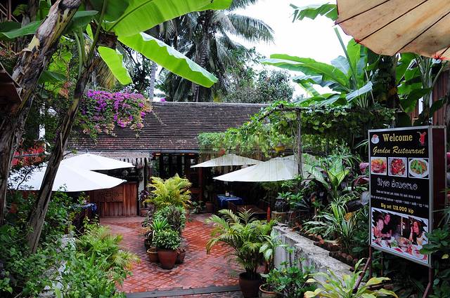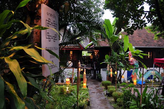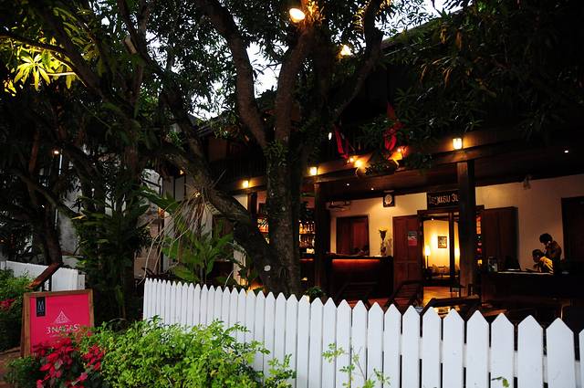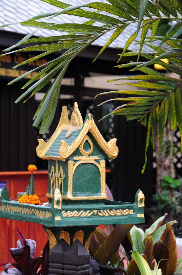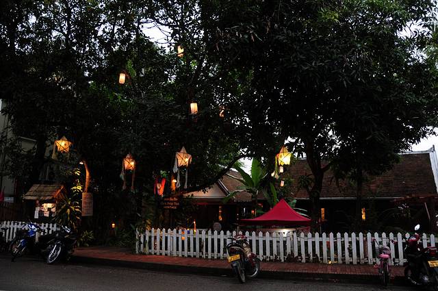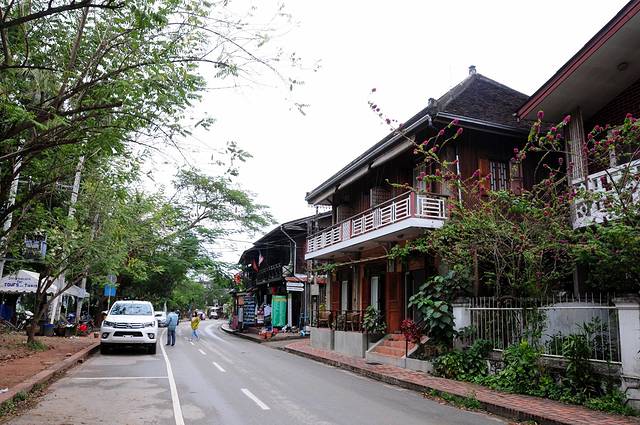 我们在琅勃拉邦住了六个晚上,参观皇宫博物馆,拜访香通寺等若干寺庙,两个清晨去感受布施,登上普西山观湄公河落日,端坐湄公河畔听水,前往手工村观摩手工制纸、手工织绢,在二战桥上漫步,戏水于光西瀑布和白雪瀑布,在法国街逛夜市、品西餐,尝小吃,……。琅勃拉邦,没有高楼大厦,没有商业中心,没有大超市,没有“麦当劳”、“肯得基”、“星巴克”,没有车水马龙,但却有一份和谐的宁静,它深深地触动着我们的内心深处。老挝人没有隔断历史,没有丢掉传统,保留着老房子、老街道及延续千年的布施。曾经的法国殖民地,殖民者带来的西欧风情在这里与老挝本土文化融合了。这是一个来过就不会忘记的小城,一个有灵魂的城市。琅勃拉邦是一个适合发呆的地方,古老的寺庙,宁静的街道,阳光下,树影婆娑。道路两旁众多怀旧的法式民风建筑物,可以充分享受这种东西方融合带来的宁静与安逸的小城氛围。这里的时间过得很慢,很慢,慢到让你感觉不到她从你身边悄悄的溜走。路边,一杯冰咖啡,可以让你在这里呆呆的坐一天。没有喧嚣、没有浮华,只有属于你自己的一个宁静。
