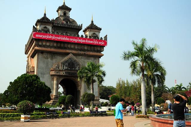 实在太冷啦!找了家咖啡馆暖和一下,老板是广西人,和前面国花酒店老板是朋友。和他聊了一会儿,提到老挝人办事效率很低,相对中国人来说也比较懒。这些年来老挝做生意的中国人越来越多,几年后万象铁路的开通会让慢节奏变快吗?老板合伙人出去买炉子和炭火了,屋子里也好冷,何姐想出去转转,拉上我,大小丁则呆在这里不想走了。我俩沿着法国街从西往东,顺着Sisavang Vong Rd大街和其延伸街道Sakkarine Rd慢慢走。两边的古老建筑尽显法式风格,不时出现的寺庙挺漂亮,只是没有光线,想着还要在此地呆几天也就走马观花的看看。