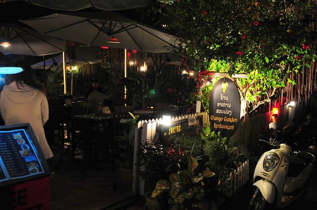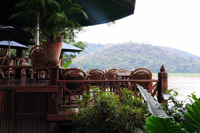 回到市里看着雨停了就打算去湄公河边的咖啡店坐坐,顺着湄公河边的路走了好一段才发现这是单行道,好在没电子眼没警察,嘿嘿!在这条路上划分了好几个停车场,路边的客栈和酒吧、餐馆都极具情调,紧靠河边还有许多河畔餐馆,只不过今天太冷没有游客。