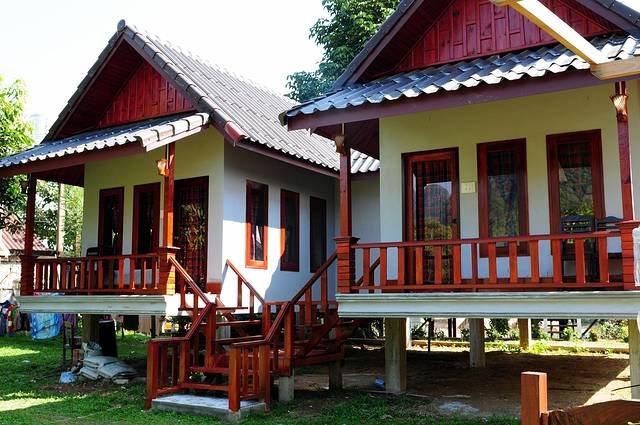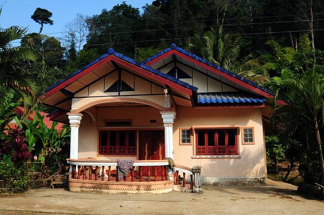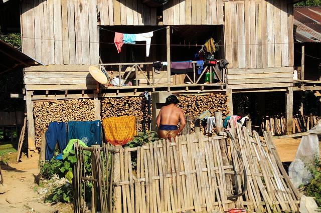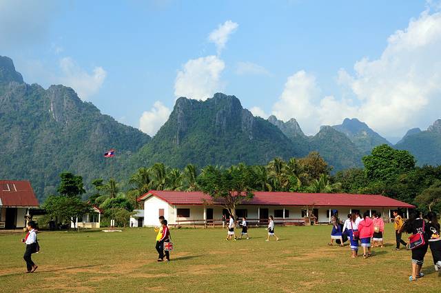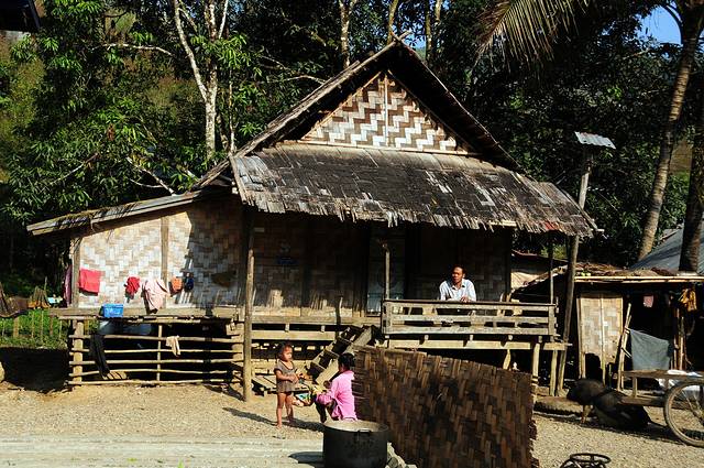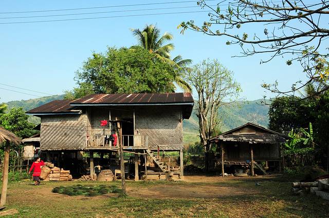 今天返程天气好多了,路边的景色挺漂亮,不时的路过村庄看见小孩子在田间地头玩耍,无论是在江河流域还是在山间林地。老挝的传统房屋都是用树叶或者茅草盖顶的简单木结构或竹茅结构房子。大部分老挝人的房子建在支柱上(即吊脚楼),以避免雨季时的洪水,而平时下面通常用来存放粮食。