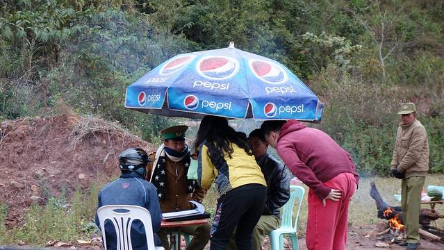 在与人员通关手续办理地点相隔一公里的地方,设了这个关卡,专门负责入境车辆的通关手续。递交自己的行车证和驾驶证以及保险单据,缴费5万KIP,复印驾驶证等等收费5000KIP。把所有单据放在一个专门准备的袋子里以便后面的各种检查。