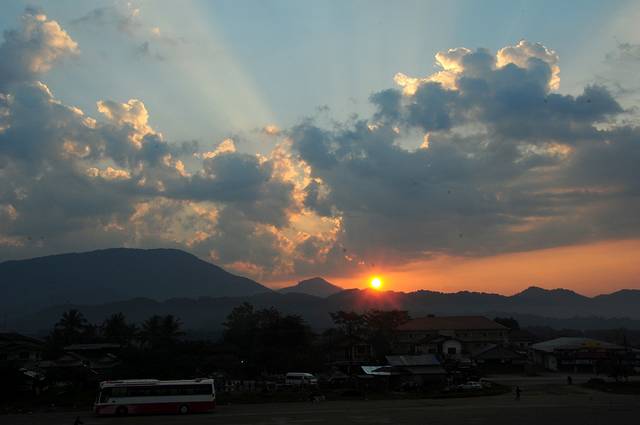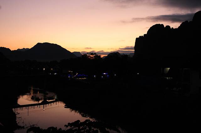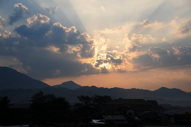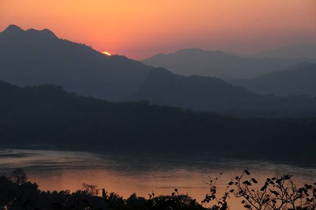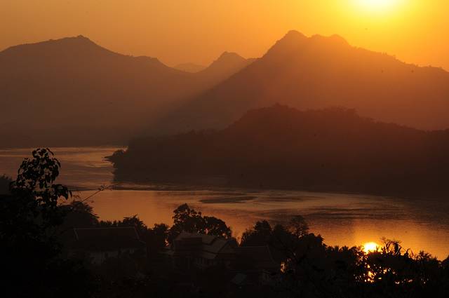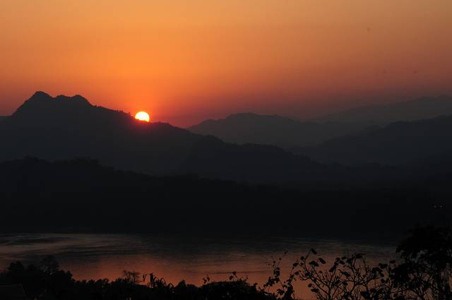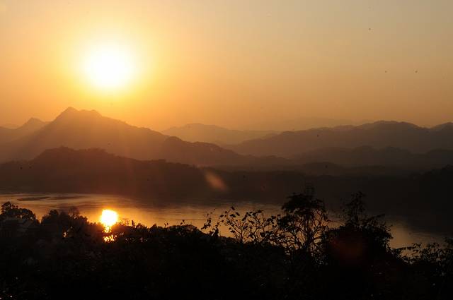 在琅勃拉邦,必做的几件事情中有两件都是和夕阳有关的。一个是登高普西山,在落日的余晖中远眺琅勃拉邦。一个是坐在湄公河畔看夕阳西下。我们在琅勃拉邦停留了3个黄昏,但天气都不太好,所以没能在湄公河畔的看到日落,据说湄公河畔的日落则更亲近清静一些。很想在河边找一家餐厅,一边享受美食,一边慢慢得等待日落,这也是典型小资生活的一部分了。日落下,舟返航,倦鸟归巢,椰树和远山都成了剪影。那份宁静对我来说,简直是天堂般舒服惬意。