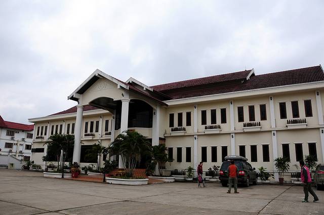 早上起床收拾好,8:35出发,有大姐挑担买海苔和竹筒糯米饭,买了2个尝尝,后来发现超级好吃,有椰奶的味道。路过“LA”的大学Souphanouvong University,建立2003年的该大学是老挝国立5所大学之一。