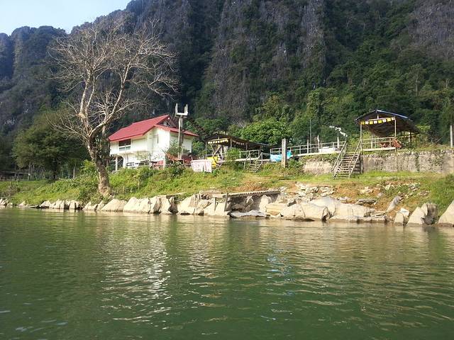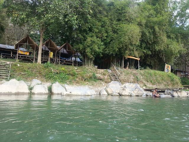 再往里走看见一家中餐馆“老挝国花酒店”,老板是广西人,可以吃饭兼住宿,酒店位置很好45美金一晚,上菜速度很慢我们正好到处看看倒也享受,份量比昨天的少但味道还行,三菜一汤18.5万,感觉他们请的老挝服务生有点木讷,哈哈,老挝有名的“不着急”。在这里遇到重庆过来的游客,他们在河边找的住宿240元人民币含早说是比较清静。