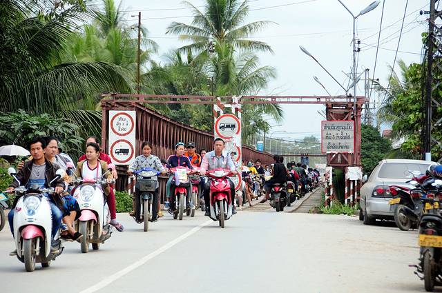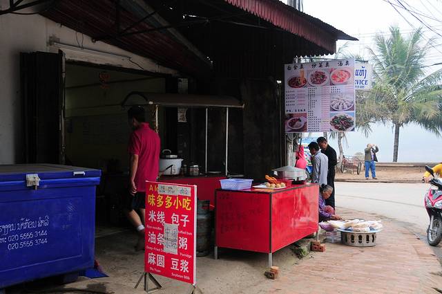 在等带面条的时候遇见两位中年游客,他们是河南人,参加了一个旅行网组织的自驾游,从老挝到泰国,说是8辆车一起出行,费用全部AA制,还说到他们过关时被老挝人刁难想多收费,把他们喊到旁边的房子里耽误了很久最终没有得逞,看来老挝关口乱收费现象是随机的。
