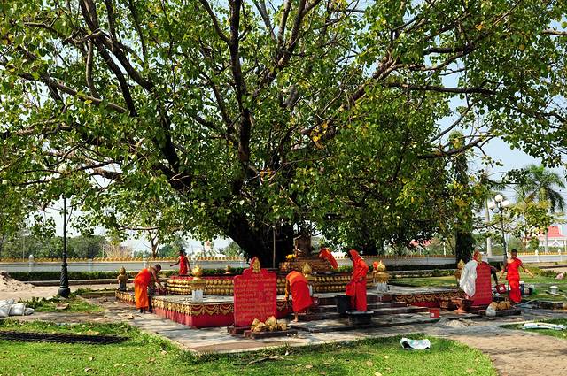 刚出酒店就看见一队起得非常早的僧侣在为布施的信众颂念经文以示感谢。起得这么早没有删减任何细节,相比较法国街上的布施,这才是原滋原味的布施,而后者受到大量游客的参与使其有些变味了。