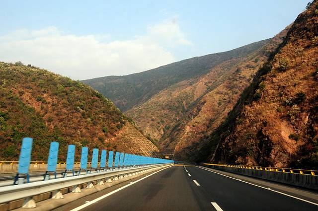 沿着AH3即G8511昆磨高速公路,昆明—磨憨694公里,一路上经过勐腊、普洱、玉溪,再到昆明,途中我们在通关加油200元(5.8元/升)。因为早上吃的晚,面条太扎实还因为在路上吃了糯米饭和玉米都不觉得饿,快16:00在车上吃了方便饭后一路过了昆明、富民后在武定下高速住下,此时是19:50,期间昆明收费257.45元,武定收费47元。顺着大路在河边找了家武定宏宇酒店住下,条件不错挺豪华,100元/间。