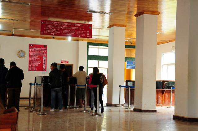 可就是这样在赶到边检口岸时大约是16:15,国门外排队的车也不是很多。我们进入边检大厅时还看见几个柜台都有工作人员,因担心收2万小费,我们自觉去填出境单。等我们填好单子排队盖章就只剩下两个工作人员了。轮到我们时先向大丁索要4万(含车子),刚开始以为是冲车子收费,轮到何姐、小丁、我的时候都被讨要2万,我没好脸色的问为啥要收费,那个人说是盖章费。我说盖章为什么要收费?他解释说下班了是加班费,不是还没到17:30吗?他说中国时间17:30就是老挝时间16:30,NND,这算是解释吗?这老挝人一天只工作几个小时啊!无奈,给了没好感又让人窝气的总共10万KIP就算过关了。后来大丁倒回去开车过关时工作人员让打开后备箱,大丁指着买的米说是自己吃的(10公斤)也就ok了。记得重庆餐馆的老板说有朋友买了4袋50公斤的大米过关时被扣押了2袋,小车查得比较松,大车可能就不一定了,也许和检查人员的心情有关吧!
