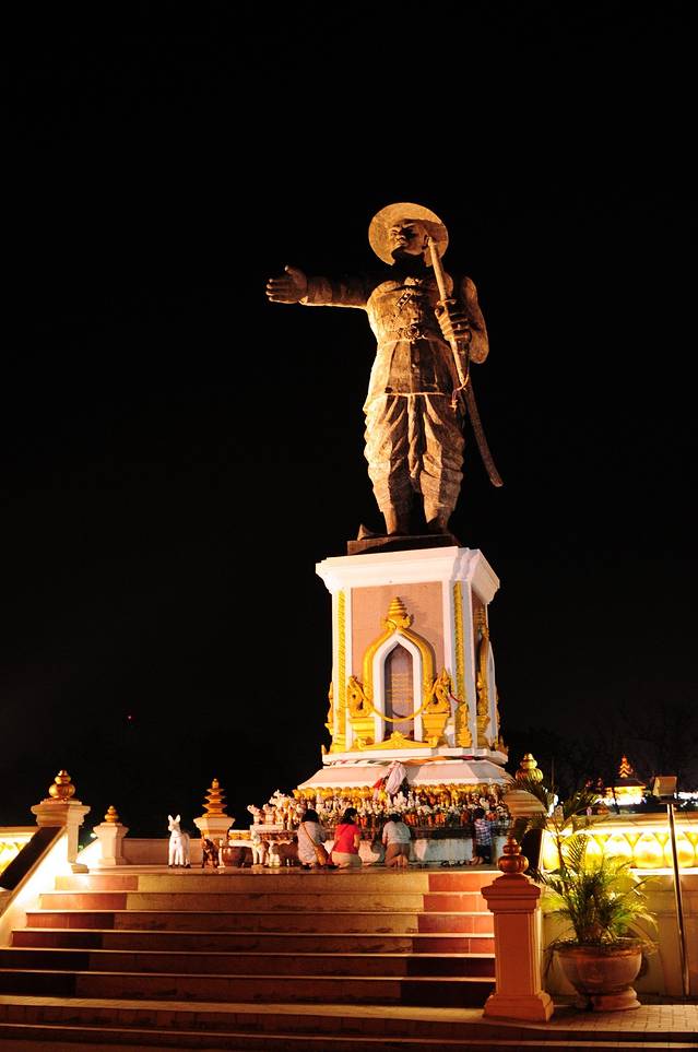 早上起来第一件事就是看天气,貌似有点放晴,赶紧准备出发去光西瀑布。去昨天的米粉店买了4个面包2万,冲上自带的奶粉就在车上解决早餐了。从琅勃拉邦到瀑布大约30公里,从住处出来先经过一个景点kaisone statue monument, 凯山•丰威汉是老挝共产党革命领导人及前任总统,在老挝的纸币上也印有他的头像,非常受老挝人民的尊敬。善于讲演,曾多次访华。