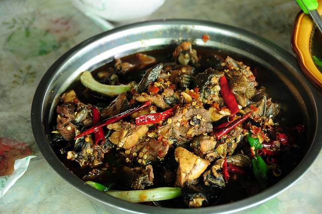 早上找了餐馆吃了大碗的牛肉面后(8元/碗,以后的几天都格外怀念它的味道和价格)后上高速,导航失误进入了昆明市区,及时纠正后9:20再上昆明名泉村高速去往玉溪、景洪、普洱G78和G8511昆磨高速,11:00分在杨武服务区加油稍作休息,11:30继续走大约在13:30到墨江县通关镇出口,问着路去找寻刺激味蕾的黄焖鸡,公路两边都是黄焖鸡餐馆。