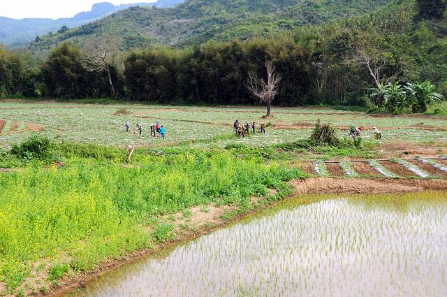 途中休息,一农舍主人指给我们说前面田里劳作的的是中国人,据说老挝的蔬菜种植和西瓜等水果的种植都是中国人,伟大的天朝人们~~~~~