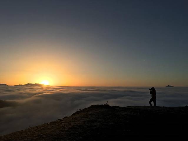 早上7点不到,山顶早已热闹起来,为了看日出大家不惧寒风,找到最佳观看、拍摄位置。