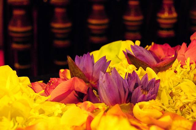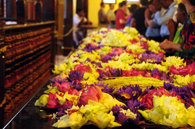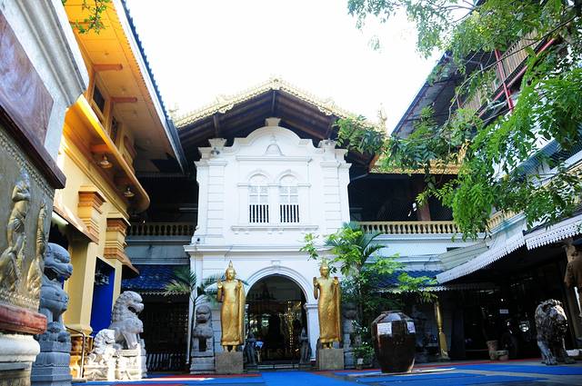 第三个是一个香火很盛的佛教寺庙——冈嘎拉马寺庙,建立至今有120多年的历史。是一组精雕细琢的建筑,融合了斯里兰卡、泰国、印度和中国的建筑特点。这座寺院特别的混杂,不但有释迦穆尼佛,各种的观音像和罗汉像,还有印度教的神,甚至中国的关公,寿星,财神一应俱全。这我也喜欢,我欣赏兼容并蓄的宗教观,而且觉得宗教本身不必太拘泥于形式,那颗自修自省,慈悲虔敬的心是真正重要的,我们只在外面看了看没进去。