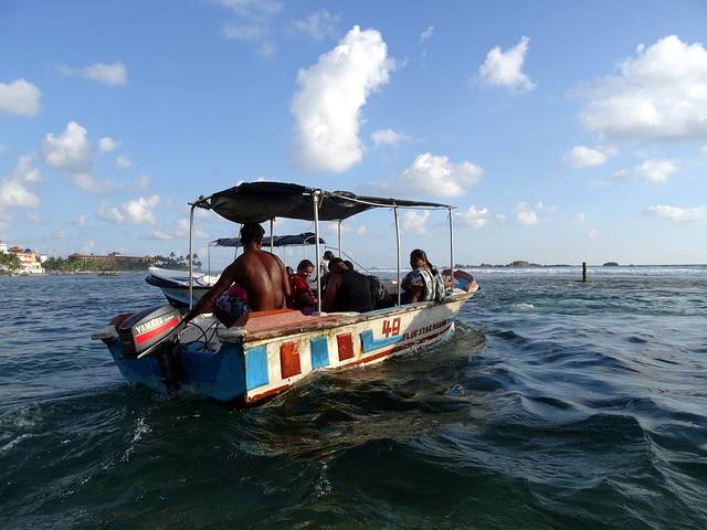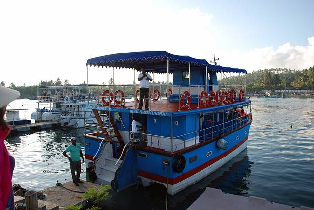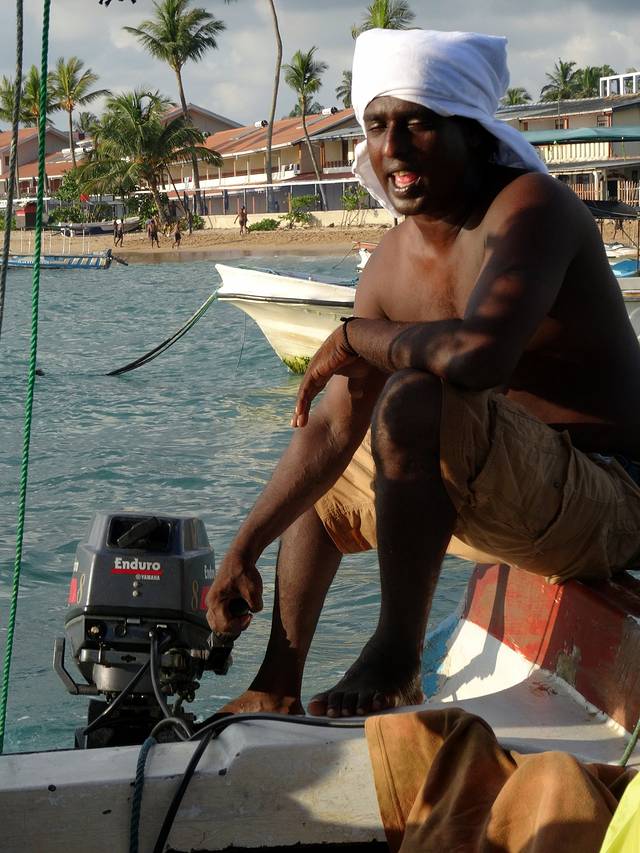 早上6:30准时在大厅等候,呵呵,老板居然亲子开车送我们去码头,酒店离码头不算太远,路上看见有好些人聚在一起喝着一种似牛奶一样的白色液体,老板告诉我这是采自于树上的一种饮料,我说是叫“托蒂”吗?他很惊讶我怎么知道,我告诉他我看过介绍斯里兰卡的电视片《魅力斯里兰卡》,这是采自于椰子树花苞的汁液,类似于我们的米酒,有提神醒脑的作用,当地人一天的工作就从一杯托蒂开始。