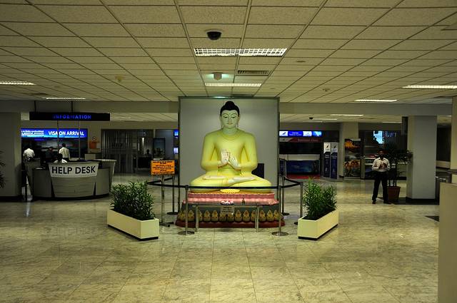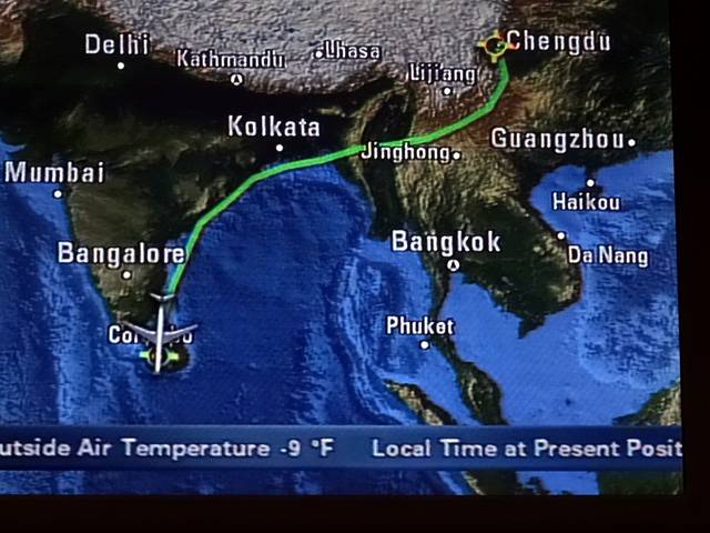 晚上7点的国航成都直飞科伦坡(CA425,19:00起飞),往返机票含税3250元,换登机牌时工作人员还看了我的电子签证纸载文档,说是发生过斯里兰卡移民官见旅客没打印电子签的文档直接遣返的现象,我估计是那官员心情不好吧。很幸运,正点起飞。空客A320飞机那叫一个空哦,完全可以叫“飞机卧铺”,成都-科伦坡直线距离4238公里,飞行时间5个半小时,飞机餐不错,填好入境卡后躺在4人组的椅子上睡了……一觉醒来,顺利并在当地时间22:27正点到达科伦坡。