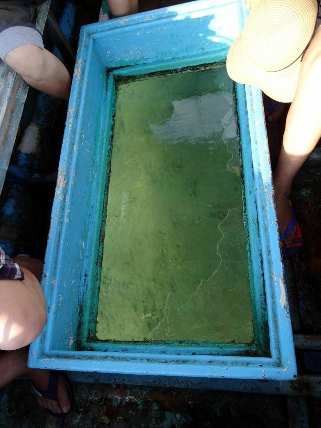 船绕行一大圈后在一个浅滩停下,有渔民拿着海草在喂食野生海龟,体型硕大,游客也可以喂食,貌似要付费。