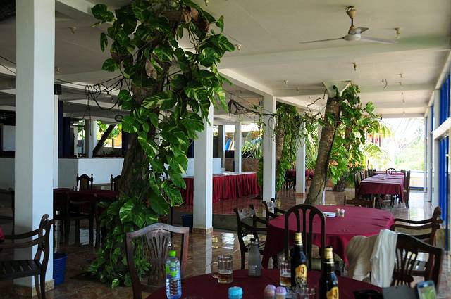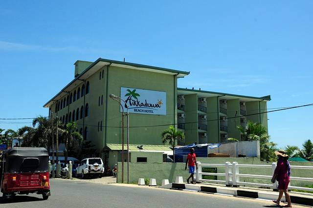 在门口等了半天也不见公交车来,偶有一辆还不停,只得打突突车去加勒,在加勒汽车总站外看见有到科伦坡的车,上车说明到希克杜沃,票价130RS,车上很挤!到希克杜沃的很热闹地段司机叫我们下车,顶着烈日我们开始找住宿,看过几家后住在希克杜沃海滩酒店,从35$降到每间28$含早,到房间一看,条件不错。