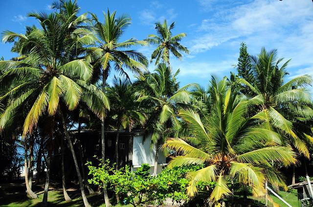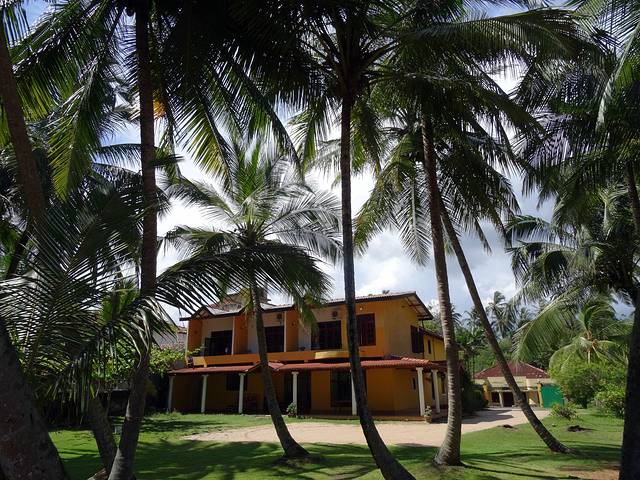 酒店的院子里有兰卡人在举行新年庆祝活动,感觉是有钱人喔!酒店二楼露台的景色,树上长的就是金椰子,咋不掉一个下来?