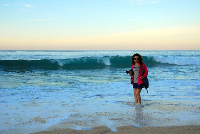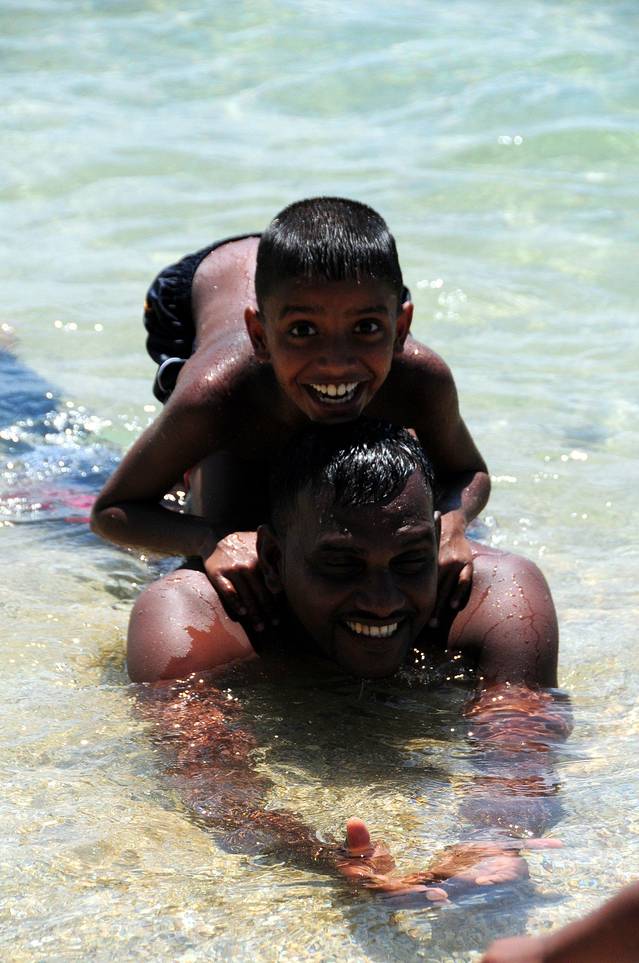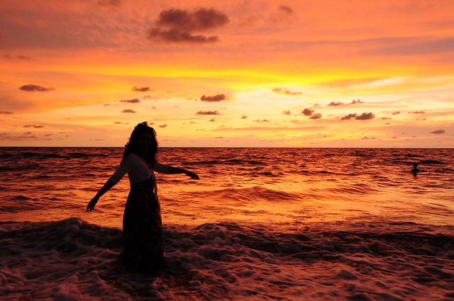 这是已近黄昏时分,光线变得柔和,我们在海滩上走走停停等待日落,印度洋绚烂的日落叫人留恋,海滩上戏水的当地人也乐在其中。