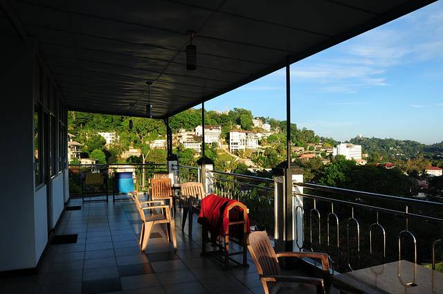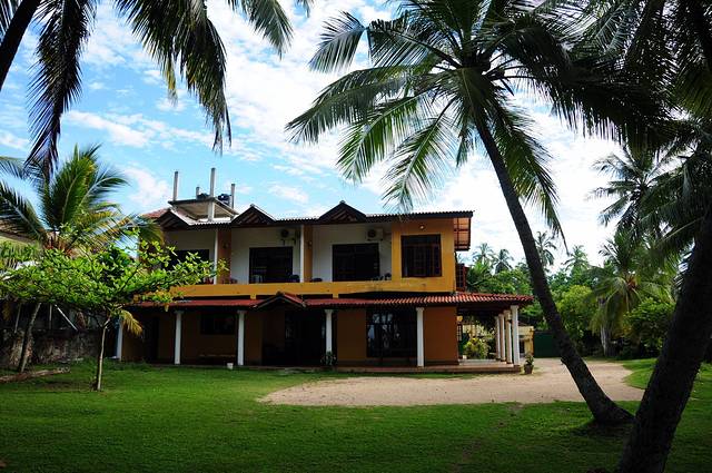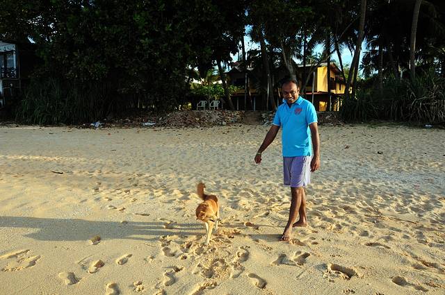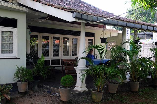 他先带我们去了路边一家带有小游泳池的酒店,好像是7500RS,后来又带我们找到斜对面一家海边民宿southern rest,只有一间房三张床无空调仅有个大吊扇,因是大中午天又热又累又饿,就决定住下,推开门坐在阳台上可以观海景听海涛。后来才知道这是ayesh dilanka表哥的家,临走时我给了他50元人民币做个纪念也补偿他的付出。
