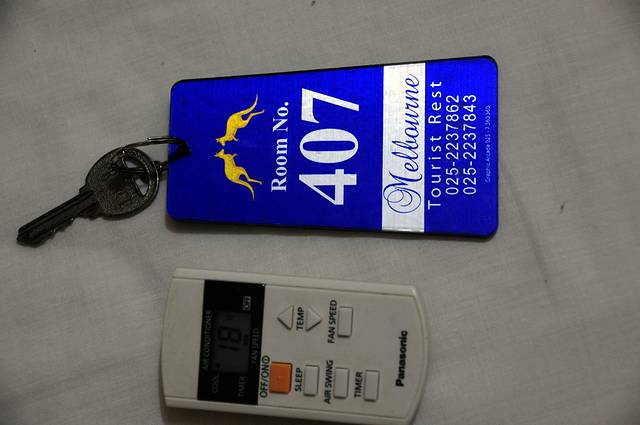 看到这个地标就到阿努拉德普勒了,告知我们的要求后,prasad带我们去了墨尔本酒店melbourne tourist rest,一个带有非常漂亮的花园酒店,讲价一番以30$成交。大中午的那叫一个热啊,在酒店简单午餐,当然沙冰必不可少,本想午觉但司机说怕下雨,只得稍作休整,兰卡的空调只制冷所以空调板很袖珍。