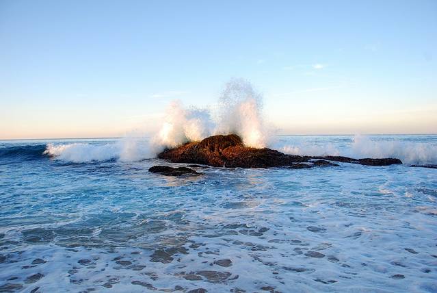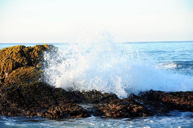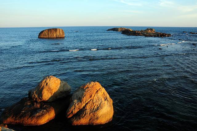 等到天色差不多了我们又继续来城墙上等日落,印度洋的日落真是美极了,夕阳照耀在礁石上,金黄一片。