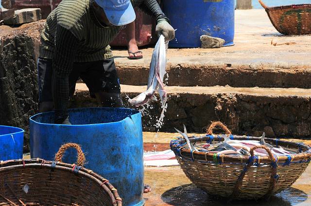 早餐后打算去鱼市买点海鲜,老板帮我们要了辆突突车,300RS去鱼市,但到了鱼市说是当地人的什么节日没有开门,车夫叽里咕噜一阵后说是带我们去另一个市场,再加300RS,后来讲价为总共400RS去到那个市场,到了一看,可能是当地人的菜市场,海鲜不多。