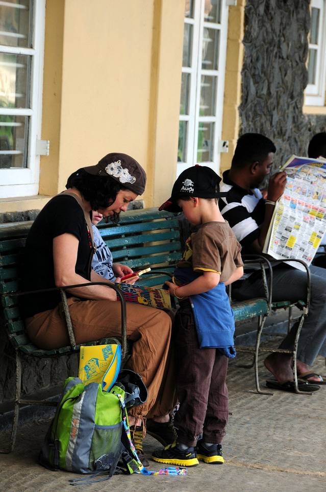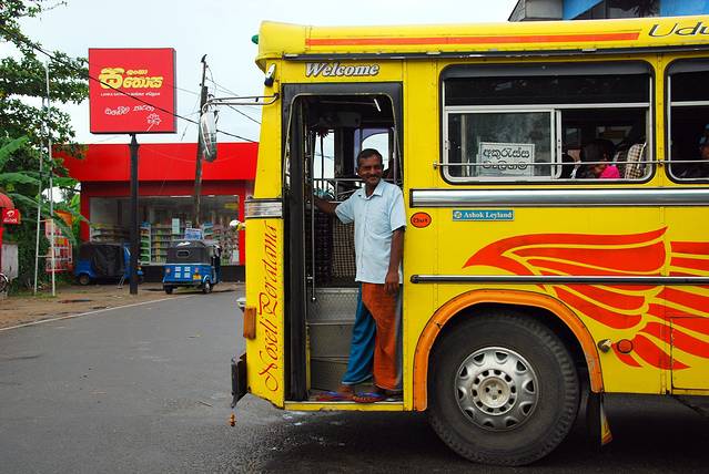 上车买票到加勒每人50RS,大箱子按人头收费。车上人不多可能是当地人都在家过节吧,但兰卡的公交车车速很快,不关车门,即停即走,车内的音响震耳欲聋,想拍张清晰的照片是不可能的。就在这车上我们认识了售票员ayesh dilanka,就这样颠簸着好奇着到了终点站加勒。我下车打听突突司机想去UNAWATUNA,司机喊出一个高价我正在犹豫,ayesh dilanka说再坐他的公交车送我们去,25RS/人,其实我们不知道,这车一路过来已路过了UNAWATUNA,我们本应该在加勒之前下车的,那好吧,只得再坐回去!公交车进总站排队出发,上来一老者模样的人,ayesh dilanka说是他爸爸。在等车的间隙,我看见公交车上有老人、儿童、神职人员的专座,加勒的车站有发往各地的班车。在车上我还给一位老太太让了座,周围投来了赞许的目光,发扬我大中华尊老爱幼的优良品质。大约十来分钟光景,ayesh dilanka叫我们下车说是到了,可他也跟着我们一起下了车说是要帮我们找住处,原来他刚才把他爸爸叫来就是接替他工作的,他这一举动真的挺让我们感动的。
