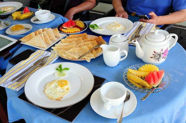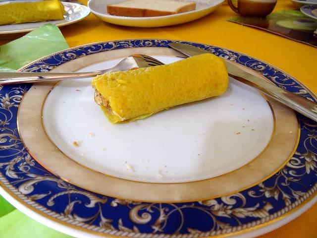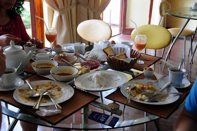 服务生来敲门问明天早饭吃什么,我即要了西式的又要了当地的,有些好奇…..