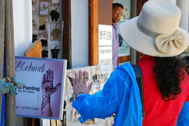 看见一家“hand painting"店,可惜老板不在,她妈妈说老板走亲戚了