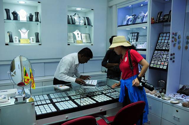 一家宝石店老板热情招呼进店参观,说是去过云南参加过展览,柜台上还有一本中文版的《宝石鉴定》
