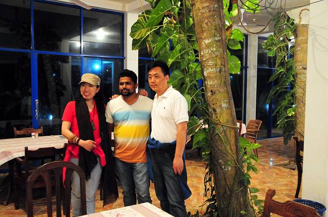 今天要告别司机了,因司机家离这里还有近185公里大约3小时的路程,我们在夜色朦胧的海滩上简单的晚饭后合影留念,给了司机400$(本来345$)以感谢他这五天来的辛苦工作。prasad驾驶技术好,人品好,爱干净,非常专业,处处为我们着想,5天的相处,最后分别的时候,大家竟依依不舍,旅途中最难过的事莫过于才刚刚成为朋友的人,马上又将分别。