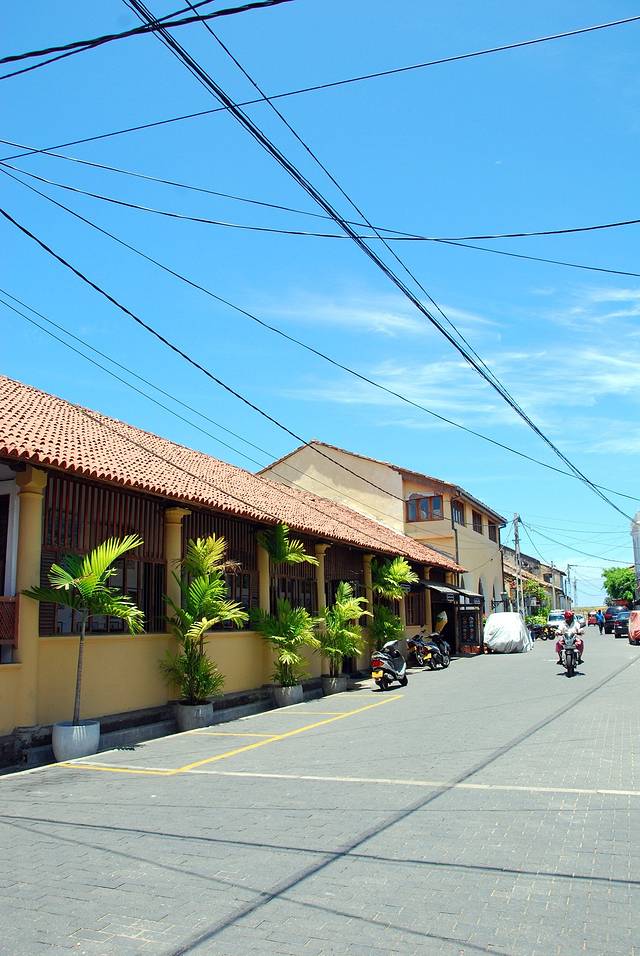 黄色建筑就是加勒的海事博物馆,在它的中间,也是加勒其中的一个城门,我就是从这里进入古城的。它的屋顶已经于城墙融为一体,建筑风格也很有特色,带有明显的荷兰风格。