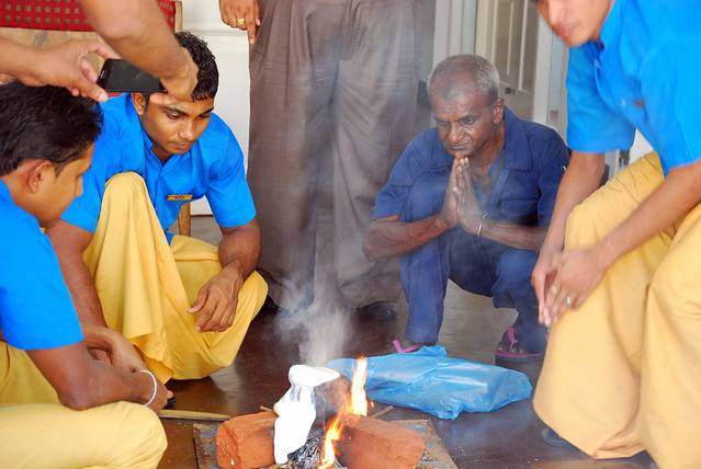 收拾完洗了个澡,下楼吃了午饭后回房午觉,刚躺下就听见敲门声,原来是ayesh dilanka拿着她妈妈做的新年食物——用黑糯米做的椰味很浓的年糕,还端来了咖啡和茶,我们坐在一起聊了一会儿,他要赶着去科伦坡姐姐家过新年,感动于他的热情,我们回赠他一些糖果和一瓶南亚人很珍贵的风油精。