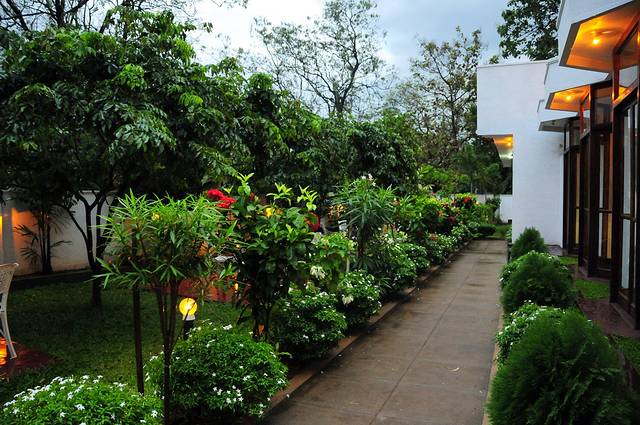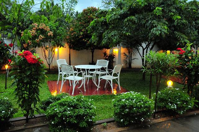 返回酒店时雨小了,但还是没法在花园里坐坐,有些遗憾。
