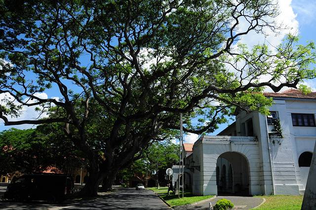 杏黄色的墙壁,当年的古老的铁质街灯,城门上的图案与雕塑,一切都呈现出荷兰殖民时期的风格。城门的建筑物古老而坚实,都是砖木结构,虽然建筑物的内部有些地方早已斑驳陆离,但是砖墙和木板看起来依然还是那么的牢固,足以见证当年繁荣时期的加勒的高质量建筑水准。