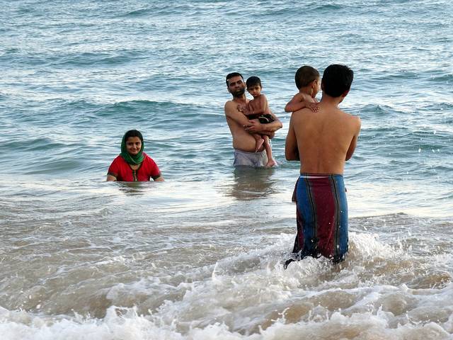 灯塔下面的海滨有很多游客和当地人在此度假游泳、戏水,这里的水非常清澈,可是实在是太晒了!!!