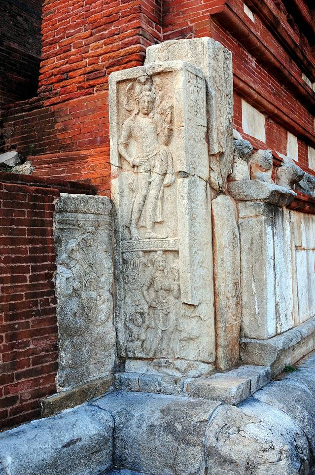 先来到无畏山舍利塔(AbhayagiriDagoba),建造于公元前1世纪,奉伐多伽摩尼·阿巴耶国王之命建造的这座舍利塔面具说当时的高度有110米,砖砌基座直径113米,厚8米,现在的高度是75米,即使这样也是现存最高的阿努拉德普勒佛塔之一。它也是当时大乘佛教在斯里兰卡的总寺院,公元5世纪,中国僧人法显曾在无畏山寺修行两年,带回了几部重要的佛经,为佛教在中国的发展提供了重要的理论依据。