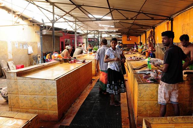 米瑞沙、黑卡杜瓦和乌鲁瓦图纳,这是斯里兰卡南部海岸的三大海滩旅游胜地。所以今天我们准备住在离加勒很近的小镇乌纳瓦图纳。老板亲自开车送我们去车站,还热情的领我们在美蕊沙的海滩逛了一大段,沙滩上一个个摊位放着各色大龙虾和叫不出名字的鱼,都是当天的新鲜货。再折返回来去火车站,路过汽车站貌似看到有公交车去加勒,老板带我们在紧邻的火车站去看看火车时刻,结果时间不合适,还是决定坐公交车。