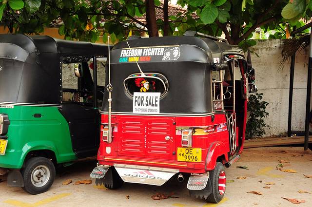 从鱼市突突车回到客栈300RS,放下东西洗了个脸就出门找朋友介绍的那家中餐馆“美食美客”,老板娘是个广东妹妹,要了2个螃蟹,一份土豆烧牛肉,一份炒青菜,一份汤,我们把带来的“冷吃兔”也一起吃完了,花费5000RS,哈哈,吃饱喝足回去睡午觉了。穿过小巷看见兰卡人的房前屋后种有各色鲜艳的花朵,一辆待售的突突车还挺新的。